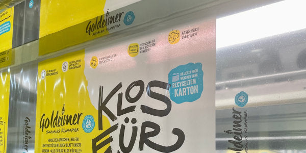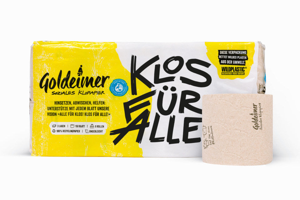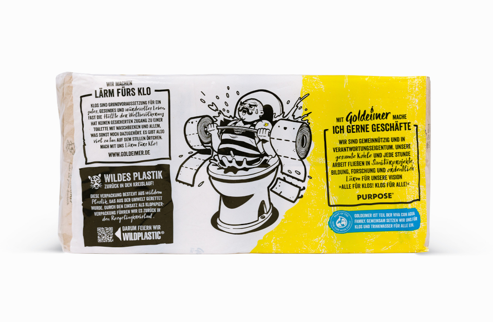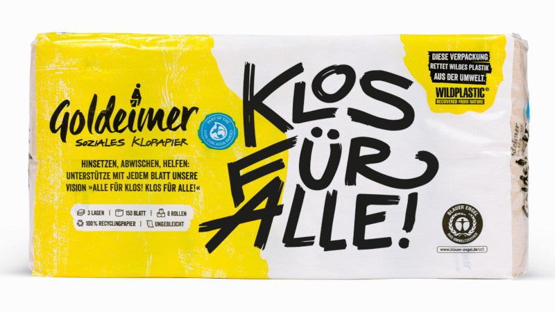 This is exactly what we wanted to tackle with Goldeimer and have managed to wrap the social toilet paper in new packaging made of WILDPLASTIC®. Because it takes many of us, actually all of us, to make a difference!