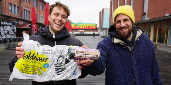 About four years ago, Malte from Goldeimer and Chris from WILDPLASTIC® met at an event. After a brief conversation, it was immediately clear to them: We want to make a difference together! How hard can it be to wrap toilet paper in wild plastic?