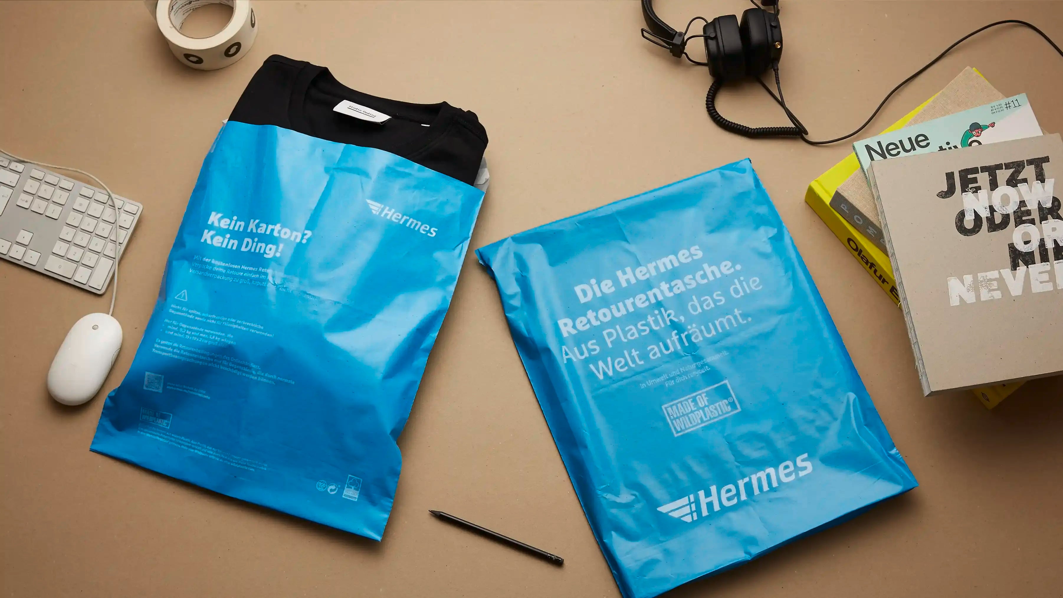 Entstanden ist die Hermes Retourentasche aus unserer WILdMailingbag, der ersten Versandtasche aus Wildem Plastik.